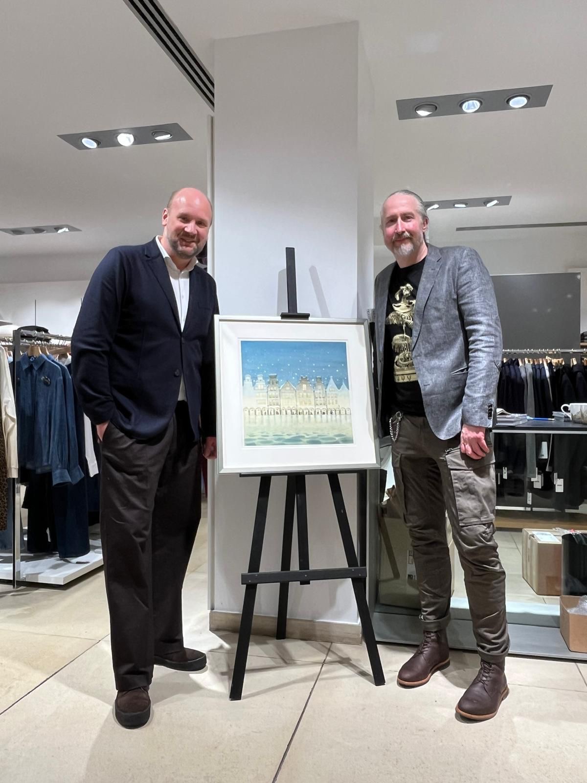 Zahlreiche Besucher:innen nutzten am 6. Dezember die Gelegenheit, den Künstler persönlich zu treffen, Bücher signieren zu lassen und die Geschichte rund um das Motiv aus erster Hand zu erfahren. Für Schnitzler ist das Event Ausdruck eines Selbstverständnisses, das Mode, Kunst und Stadtgesellschaft zusammenführt. „Mit Jörg Hartmann haben wir einen kreativen Kopf aus der Region bei uns begrüßt, der in seinen Arbeiten Heimat, Zeitgeist und feinen Humor vereint“, so Inhaber Andreas Weitkamp. Die Idee zur Zusammenarbeit entstand bei einem gemeinsamen Auftritt im Rahmen des Thirsty Talks im Juni 2025 – aus dem Austausch entwickelte sich die Vision einer Edition mit Münster-Bezug.